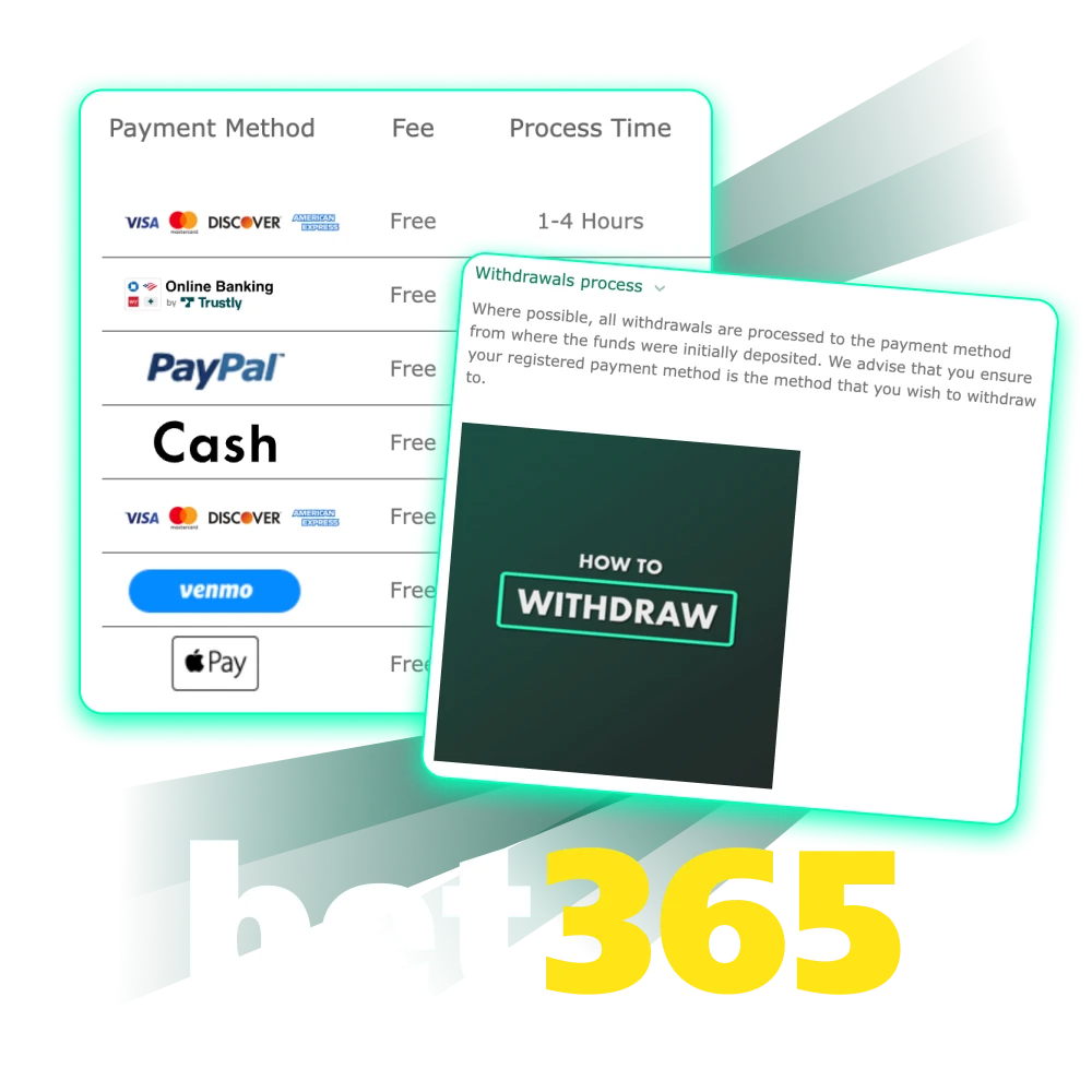 Bet365 doesn’t charge a fee for most ways to cash out your winnings. But check with your payment company to see if there are any fees.